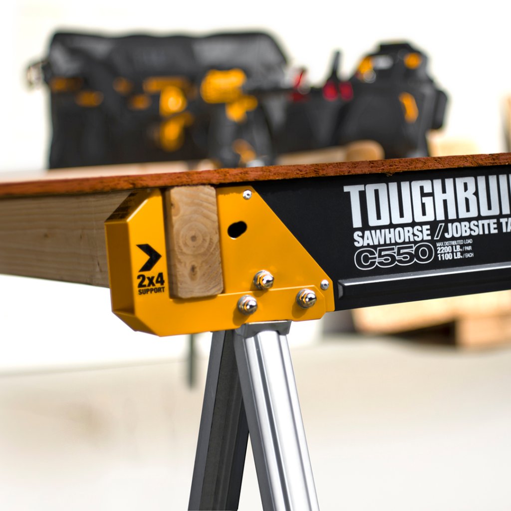 Az amerikai, TOUGHBUILT márkájú C550-es típusú összecsukható munkabak a TOUGHBUILT termékcsalád középső modellje. Az kisebb modellekhez képest továbbfejlesztése például az összecsukható, elfordítható és magasságában állítható, csúszásgátló felülettel ellátott lábak vagy a fa behelyezésére szolgáló szélső bevágások. Ugyanúgy, mint az összes modellnél, itt is megtalálható a praktikus összecsukható szerkezet, aminek köszönhetően a munkabak kiválóan kezelhető. Felülete porszórt festékkel és horganyozással borított, így korrózióálló és jól ellenáll a kopásnak is. A bak tetején csúszásgátló szalag található. Szerkezete acélból készült, teherbírása párban akár 1000 kg. A bak felső részén praktikus, süllyesztett fogantyú van elhelyezve, amely megkönnyíti a bak egyik helyről a másikra történő áthelyezését. Ezeknek a munkabakoknak a minőségével és robusztus felépítésével biztosan rendkívül elégedett lesz. Az amerikai gyártású, TOUGHBUILT C550-es típusú összecsukható munkabak szép dizájnjával is felhívja magára a figyelmet.